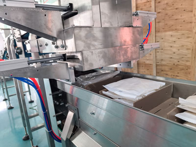 Flexible Servo Counting for Inner Packs The servo-controlled conveyor for counting allows for a flexible adjustment of the amount of bags for pasta per container. This makes it simple to switch between various packs without making mechanical adjustments which improves flexibility in production. |