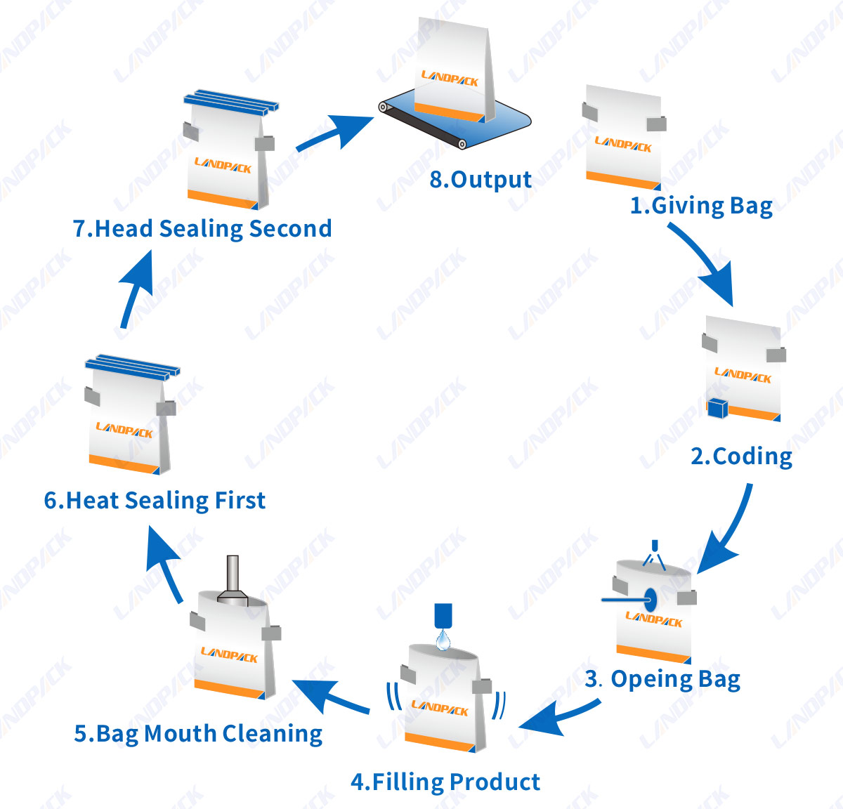 Eight-station rotary platform for stable automation The LD-8230 adopts an eight-position rotary structure that ensures each pouch is handled with precise timing from pickup to sealing. This layout reduces vibration, enhances long-term stability, and maintains consistent performance when packing liquids and sauces. |