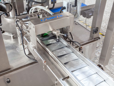 Dual-fill discharge system for high output Two synchronized filling nozzles allow simultaneous dosing into two pouches, effectively doubling production speed. The dual-line filling maintains accuracy for viscous materials and minimizes dripping or splashing, ensuring clean and efficient operation. |