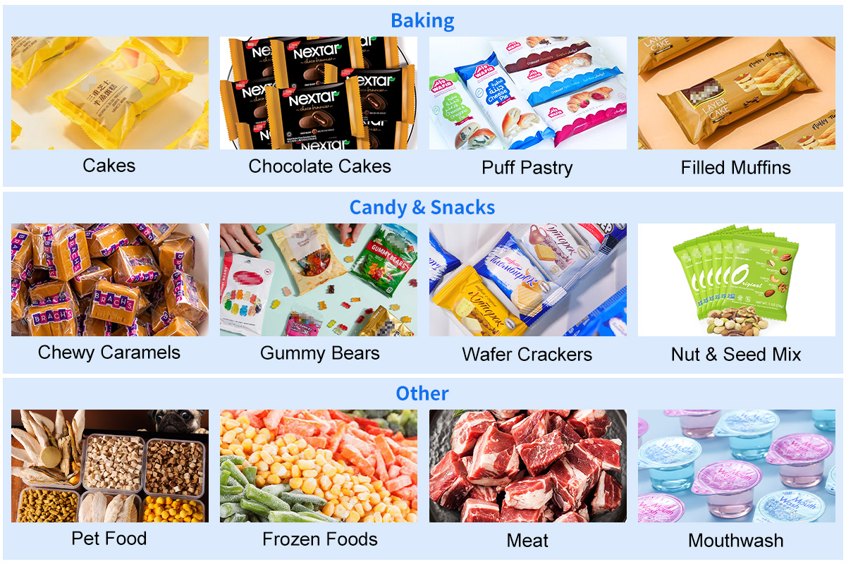 Product Positioning and Transfer Mechanism This mechanism quickly aligns pies for precise insertion into bags. It moves products smoothly between conveyor and working stations without causing damage |