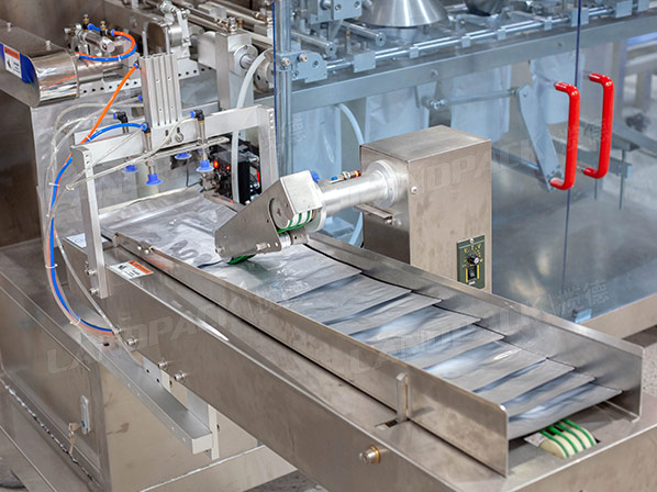 This machine is designed for doypack,with functions of making hanging hole,special shape,zipper or spout. Also ,it can complete giving bag,measuring,filling,sealing, date printing,counting,finished product delivery. It is suitable for filling different products such as powder,granule,tablets,liquid,cream and other non free-flowing liquid which equipped with feeding and measuring devices.