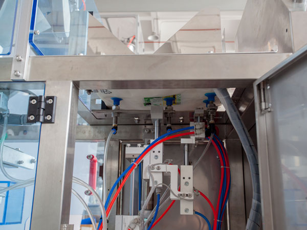 Bag Opening and Detection Station Air blowing and suction nozzles with sensors ensure proper opening. Unopened or defective bags are automatically rejected to minimize product loss and ensure a sanitary operation. |