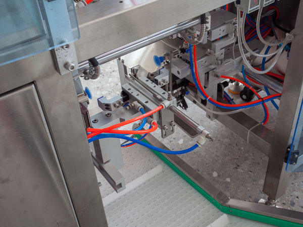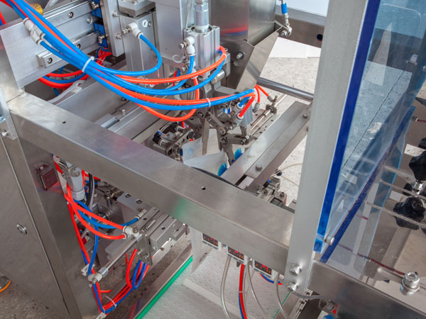 Sealing Station After filling, pouches are sealed by temperature-controlled jaws for a tight and professional finish. Time and temperature settings can be altered according to material types as well as other special considerations like date coding or tear notches if desired. |
