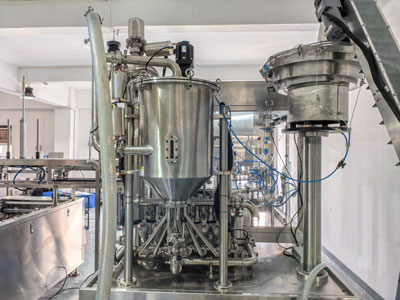 Integrated CIP Filling System CIP-integrated cleaning features allow for full internal cleaning of pipelines, hoppers and filling nozzles, without dead corners. |