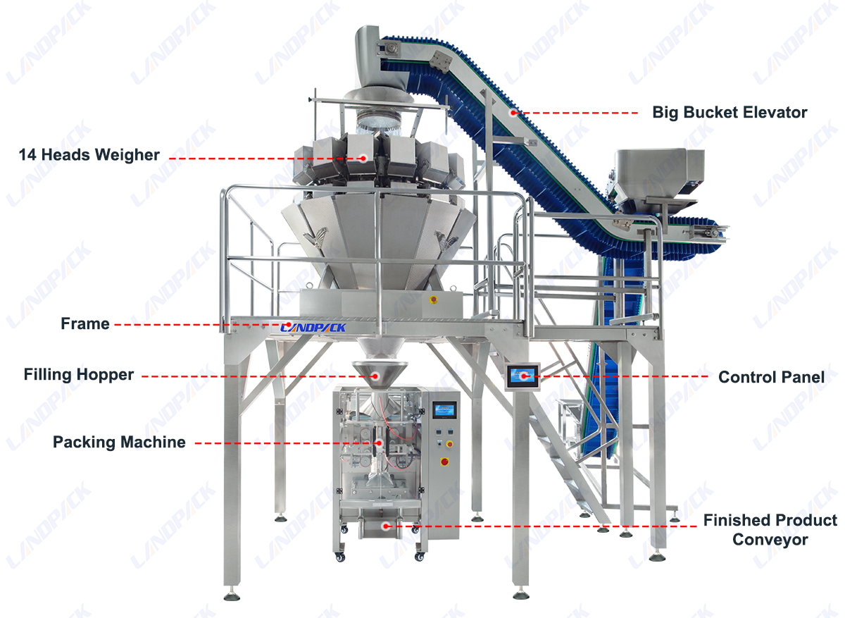 Material Elevator The material elevator efficiently lifts and transfers products from the feeding hopper to the multihead weigher. Designed with a smooth, hygienic structure and adjustable speed control, it ensures stable product flow and prevents material damage or spillage. |