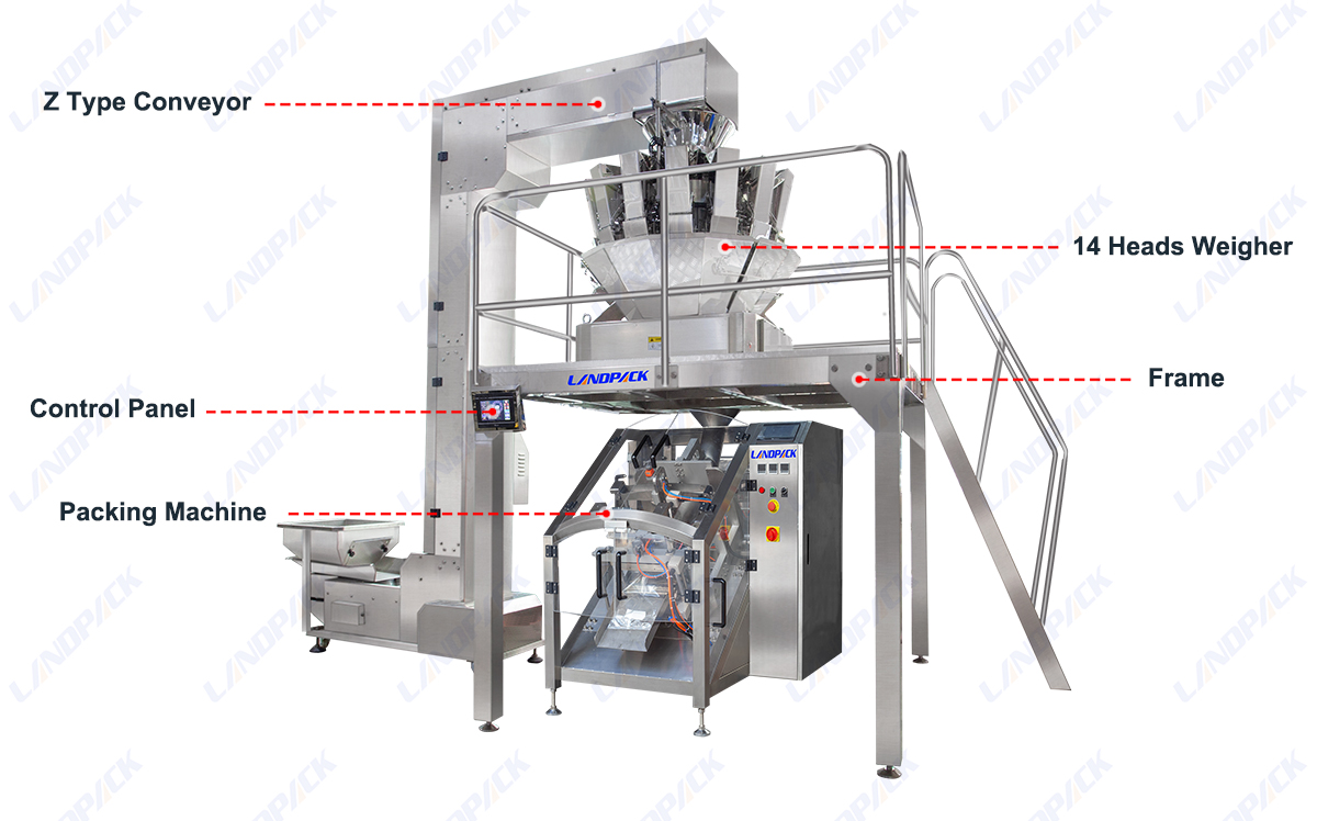 Accurate Weighing and Filling Performance Works seamlessly with linear or multi-head weighers to achieve precise dosing for ice cubes, nuts, frozen vegetables, or similar granular products. |