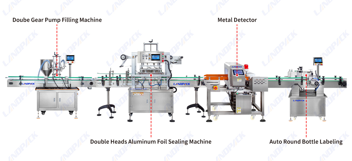 Dual-Head Gear Pump Filling for Smooth, Stable Flow Equipped with a double-head gear pump filler, the line delivers precise and consistent dosing for thick liquids like syrup, sauces, and viscous condiments. The pump system ensures smooth flow without dripping and supports fast changeover for different viscosities. |