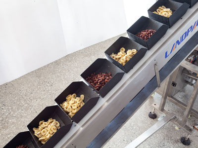 Teflon Patterned Plate Bucket Teflon-coated patterned chain bucket keeps sticky substances and fruits from sticking, which ensures an easy discharge and steady feeding. |