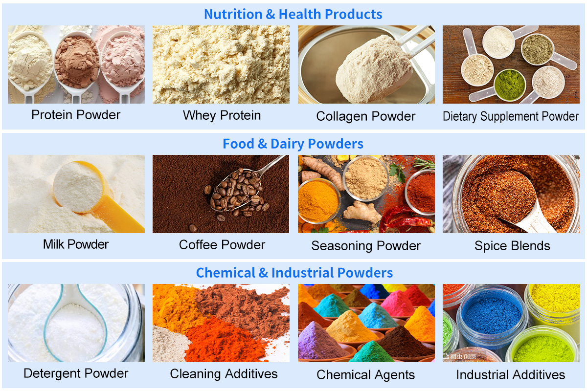 Auger filling systems are most commonly used for protein powder due to their high accuracy and suitability for fine.For higher precision, auger filling combined with weight checking is recommended.