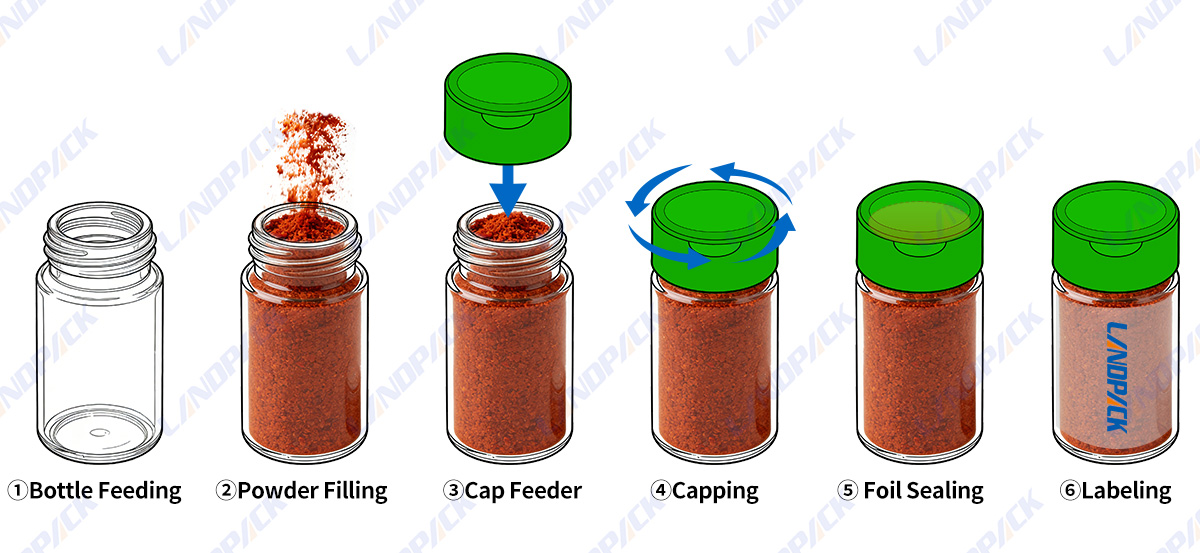 Accurate Filling and consistent results The precise structure of the auger filler ensures consistent filling levels throughout bottles. Keeping product consistency while reducing material wasted. |