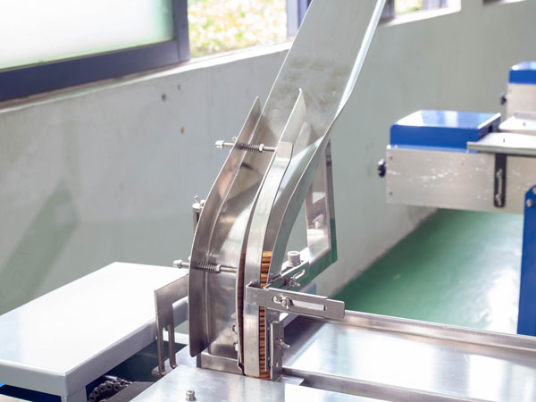 Bag Former The film's flat sheet is folded, then transformed into a tube through the forming collar. This process determines the width as well as the shape and size of the bag. The device that forms the pillow is designed for easy adjustment, which allows quick changes for various dimensions of the product. |